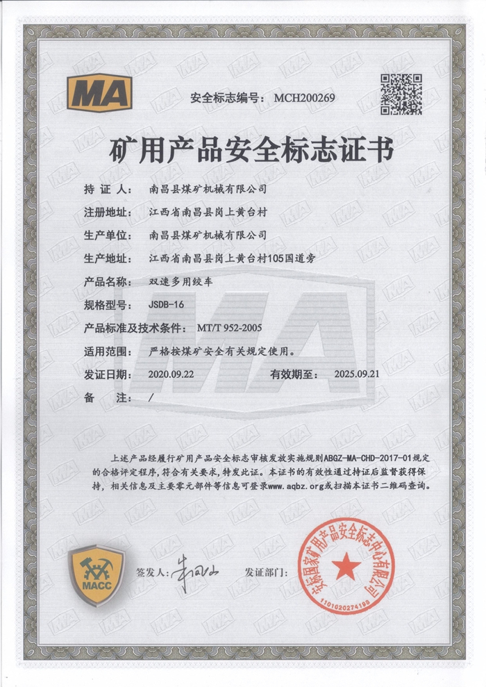 - 最小鋼絲繩破斷拉力總和:1670MPa